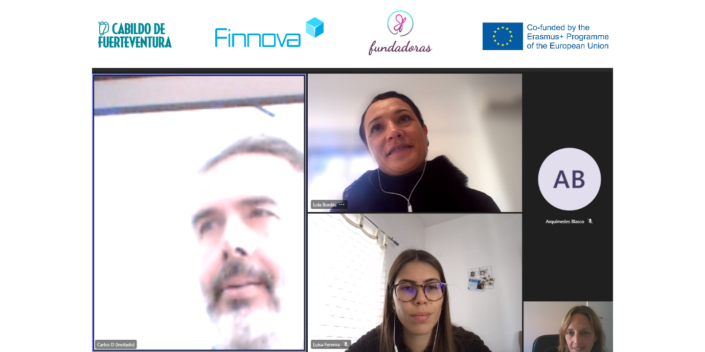 31.01.2023. Hoy, 31 de enero, ha tenido lugar la primera reunión de lanzamiento del proyecto 100Women plus, financiado por el programa Erasmus+ y que tiene como objetivo principal promover el emprendimiento femenino desde la cooperación entre Europa y África Occidental, a través del intercambio de experiencias y actividades de aprendizaje entre iguales. A esta reunión han asistido los socios del proyecto Lola Bordás, presidenta de Asociación Fundadoras, Carlos Gutiérrez, técnico del Cabildo de Fuerteventura y Carla García, gestora de proyectos europeos en Finnova.
